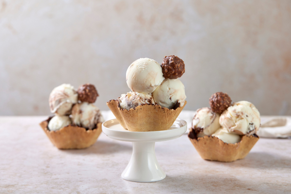 An irresistible blend of creamy milk chocolate and hazelnut flavour, complete with crisp, wafer pieces. Serve in wafer baskets for a treat that's impossible to say no to!